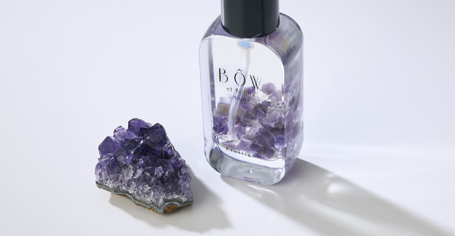 ジュエリーを身につける手元やボディーも美しくいれるよう、100% 天然植物由来成分のみでお作りした肌にも環境にも優しい全身にお使いいただけるビジュー in ハーバル オイル。 高貴なアメシストとクリスタルをオイル美容液の中に浸した神秘的で新しいスタイルのオイル美容液です。