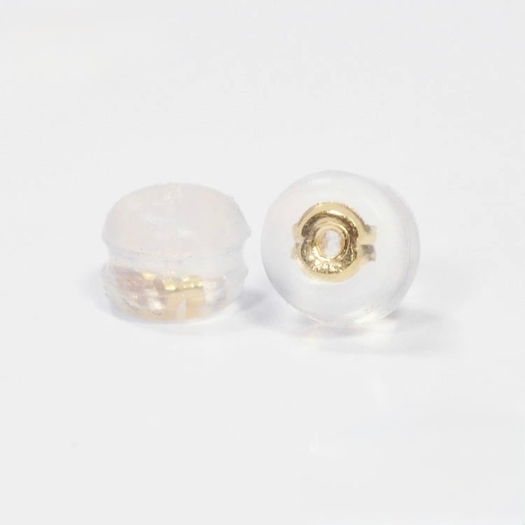 K18YGのキャッチをシリコンで包んだ筒型のダブルキャッチ。