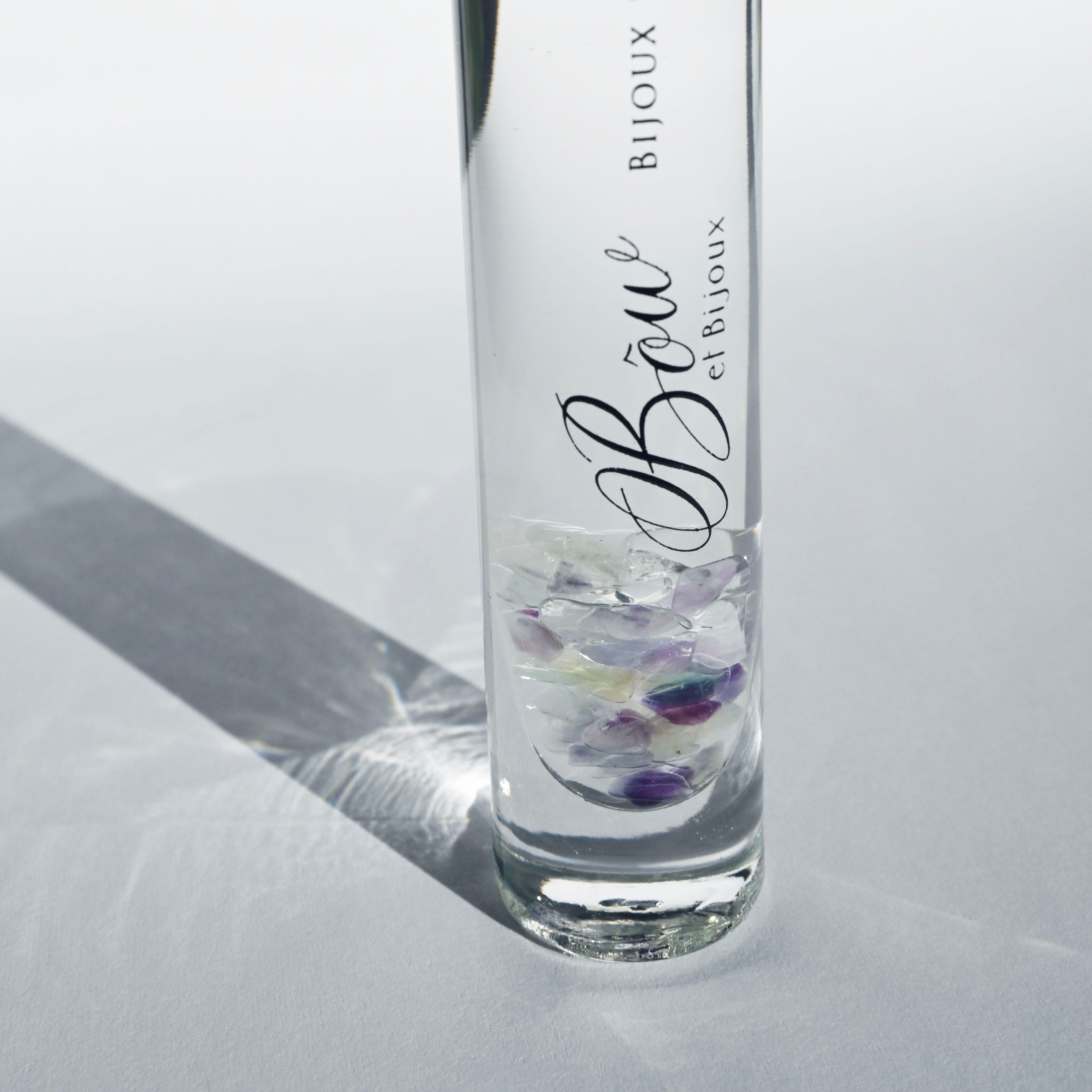 石が秘めた神秘性が、ケアの時間を特別なひとときへ導き、ボトルの中で揺らめく天然石のきらめきは、癒しのひとときを演出します。