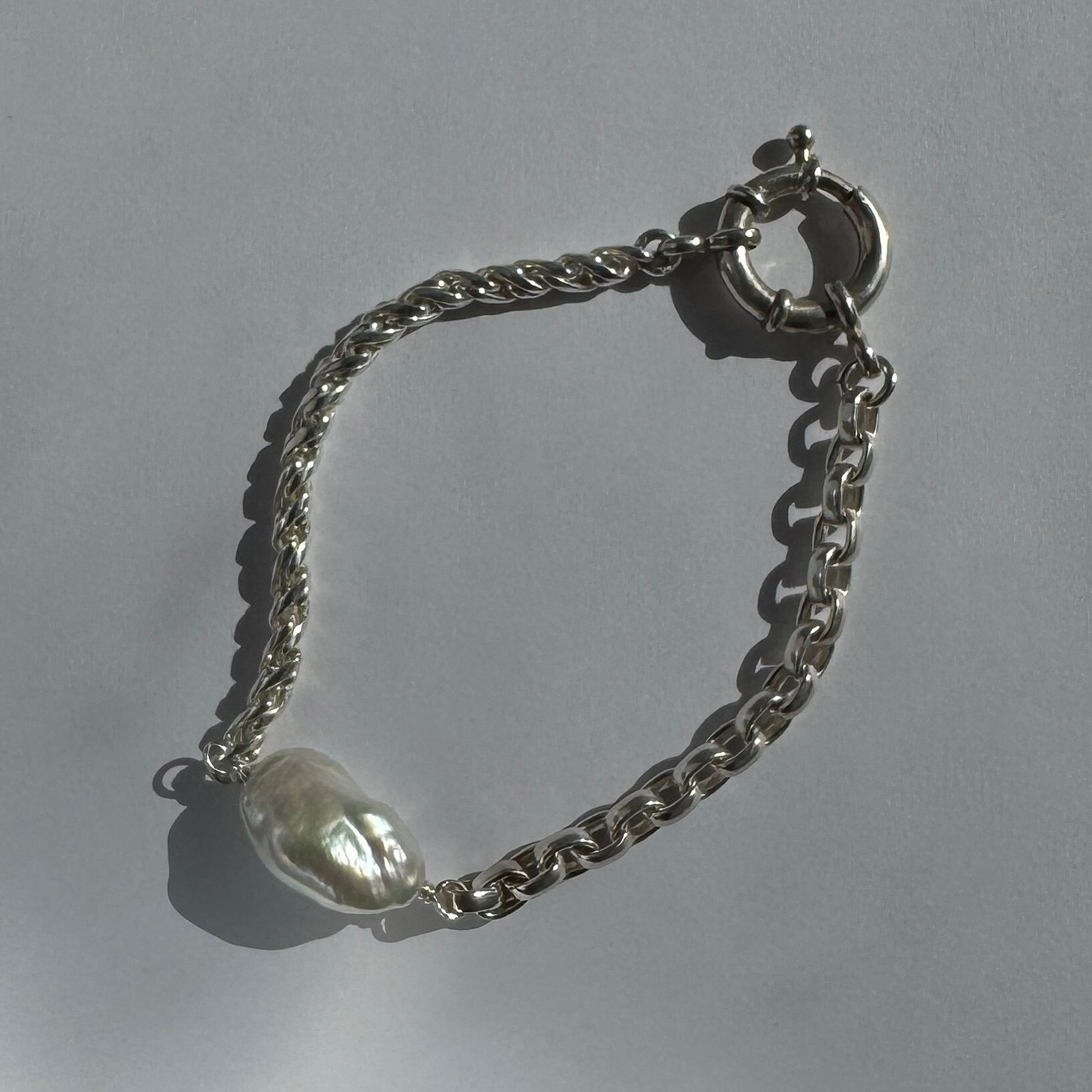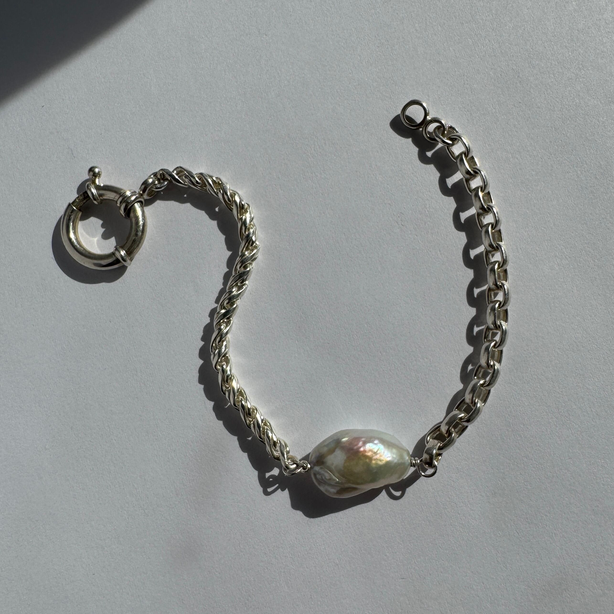 Oyster Baroque Pearl with Combination Chain Bracelet / Sterling Silver 925