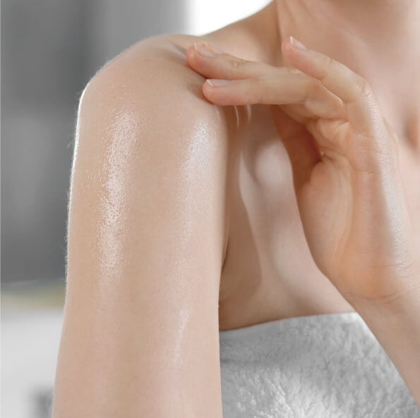 サラサラした感触と浸透性の良さで潤いをたっぷり与えながら、水分の蒸発を防いで肌を乾燥からしっかり守ります。